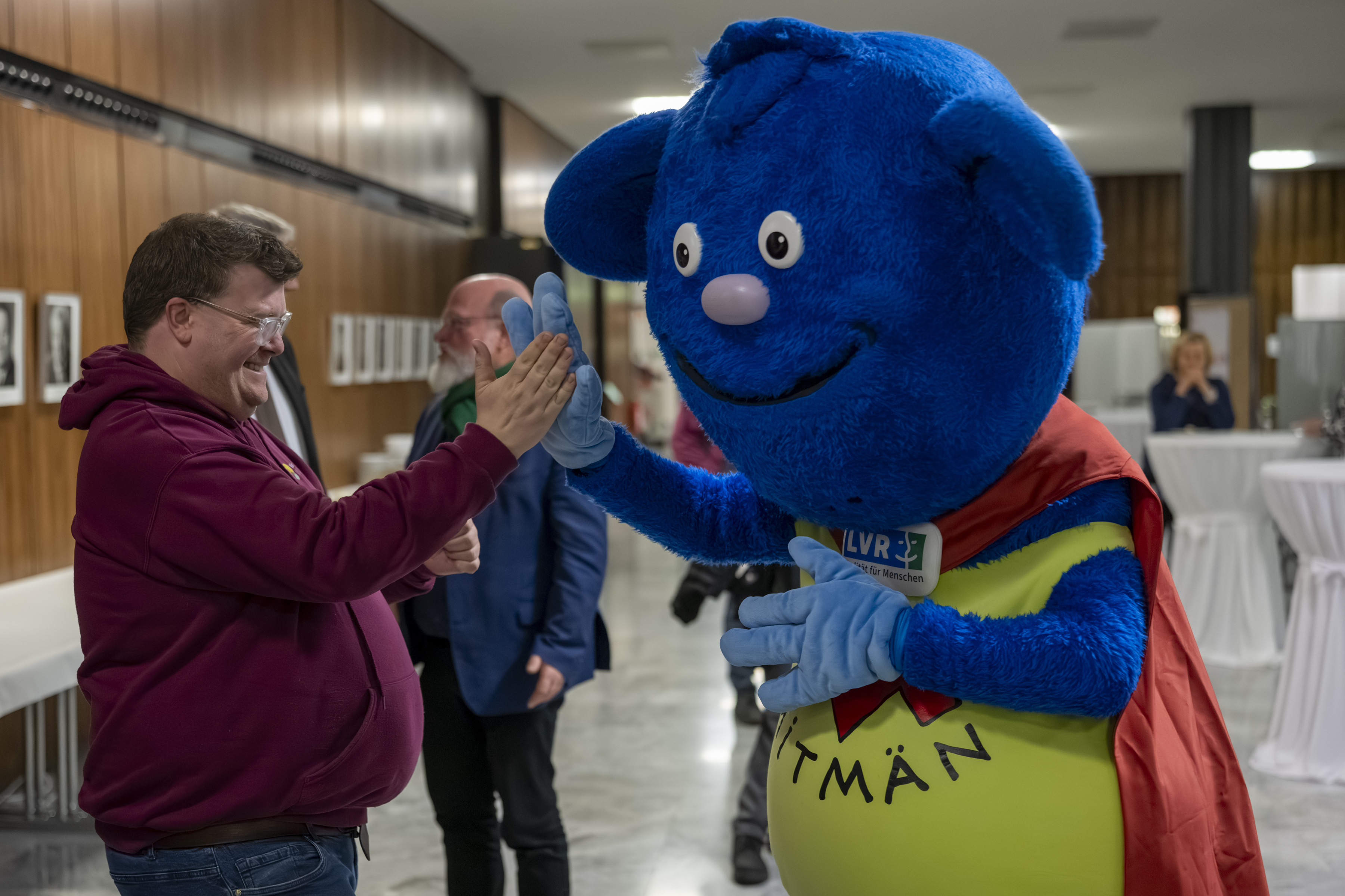 - High Five mit LVR-Inklusionsbotschafter Mitmän. Foto: Uwe Weiser/LVR