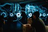 Bei der Arbeit "Positively Charged" der Künstlerin Kasia Molga (12.-19.3.2022 Kraftwerk Ermen & Engels in Engelskirchen) übertragen Besucher:innen die Energie ihres Körpers auf ein Lichtdisplay. © Kasia Molga, Foto: Lafun Photography