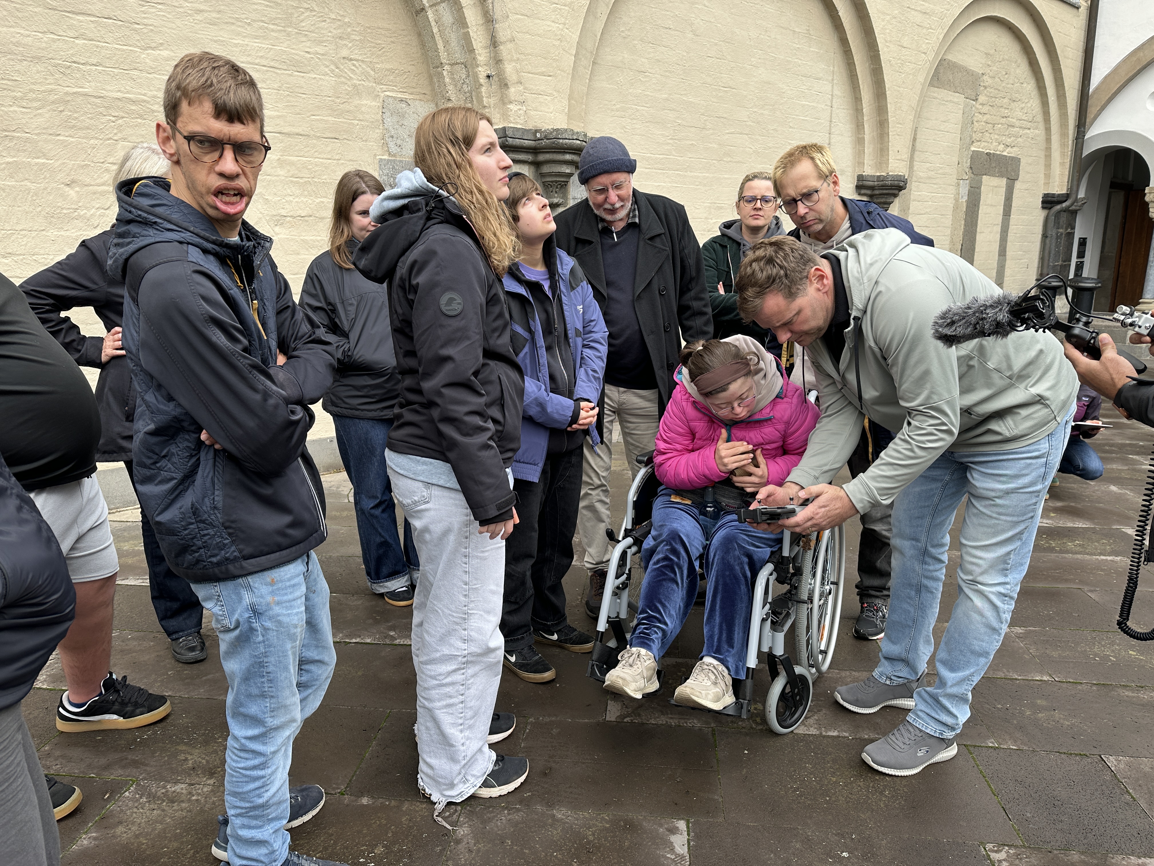 „Der Besuch der Gedenkstätte Brauweiler des LVR hat uns viele Eindrücke gegeben zur Erinnerungskultur. Dort haben wir uns angeschaut, wie barrierefrei die Ausstellung für uns ist. Am nächsten Tag konnten wir das Digitallabor in Köln nutzen. Das Tonstudio-Equipment hat uns geholfen, unsere Podcast-Folgen aufzunehmen. Ich bin sehr froh, dass wir hier sein durften!“ sagt Reinhard Lagrein, der an der Podcast-Produktion mitarbeitet.