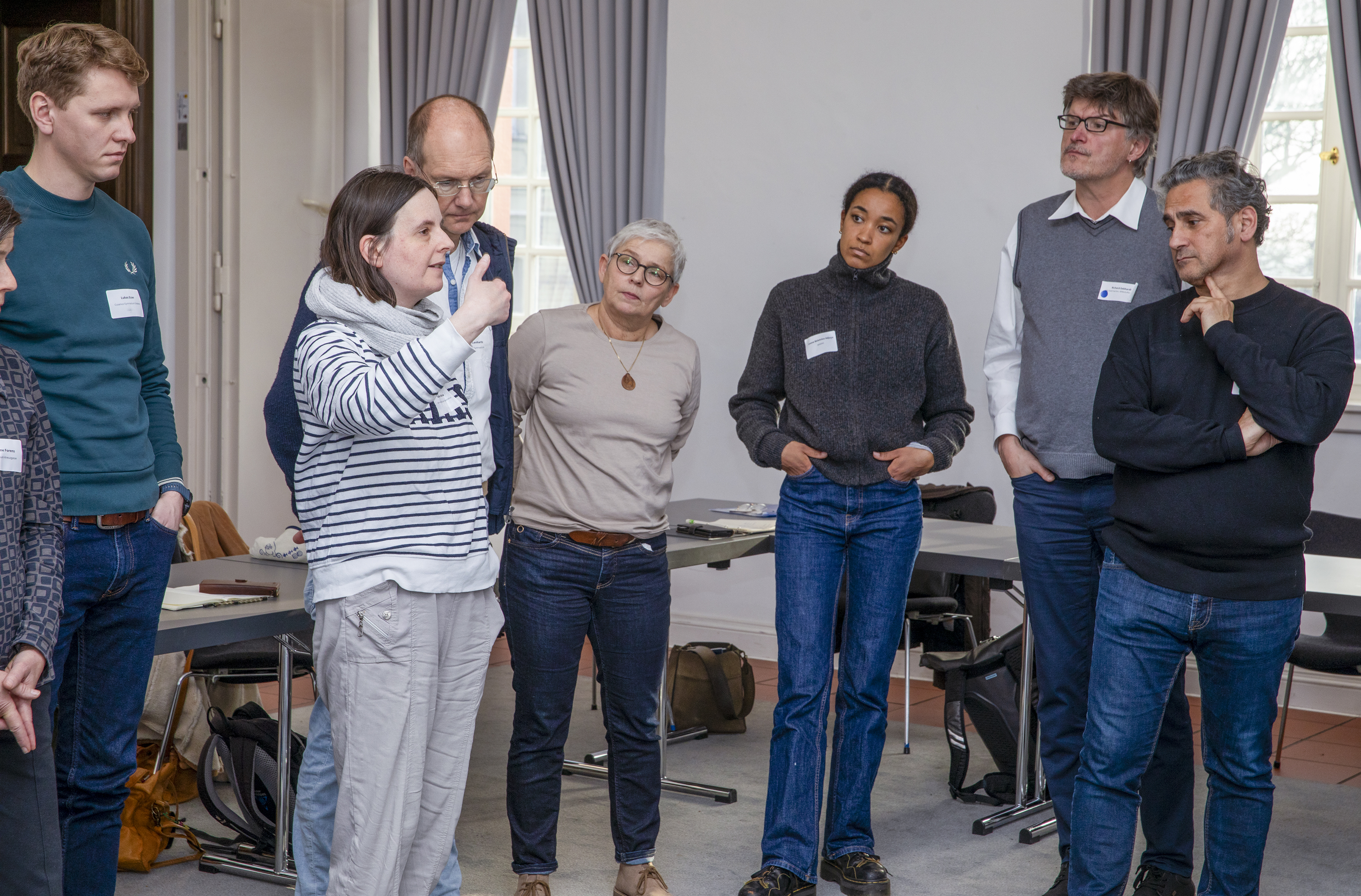 In zwei Workshophasen wurde es dann konkret: Samantha Bornheim und Jens Scholten, beide MiQua. LVR-Jüdischen Museum im Archäologischen Quartier Köln, stellten das mobile Mitmachmuseum „MiQua…op Jöck!(kurz „MoJ“) vor. Das „MoJ“ zum „Jüdischen Leben in Deutschland“ bietet in Schulen, Vereinen und Jugendzentren einen interaktiven (Erst-)Kontakt zum Thema der Antisemitismusbekämpfung. Der Verein ZWEITZEUGEN e.V. thematisierte in seinem Workshop, wie Bildung über den Holocaust aussehen kann, wenn es keine Zeitzeug*innen der NS-Verfolgung mehr gibt. Das Ziel des Vereins ist es, junge Menschen zu Zweitzeug*innen der Erinnerungen auszubilden. Die Referentin Rebecca Reusch gab Einblicke in die niederschwellige Holocaust-Education sowie die antisemitismuskritische Bildungsarbeit des Vereins. Sebastian Werner und Lena Westerhorstmann von der Kölnischen Gesellschaft für Christlich-Jüdische Zusammenarbeit e.V. sensibilisierten in ihrem Workshop die Teilnehmenden im Umgang mit israelbezogenem Antisemitismus anhand von Grundlagenwissen zu Jundenhass und durch konkrete Beispielen - ein Thema, das seit dem Terrorangriff der Hamas am 7. Oktober 2023 für viele Pädagog*innen herausfordernder geworden ist. Der Rapper und Autor Ben Salomo gab auf der Grundlage seines Buches „6 Millionen – Wer bietet mehr?“ einen Workshop zu seinen direkten Erfahrungen mit Antisemitismus in Schulen an. Neben persönlichen und direkten Einblicken zu Formen von Judenhass auf Schulhöfen, vermittelte er wichtige Impulse für die pädagogische Praxis.