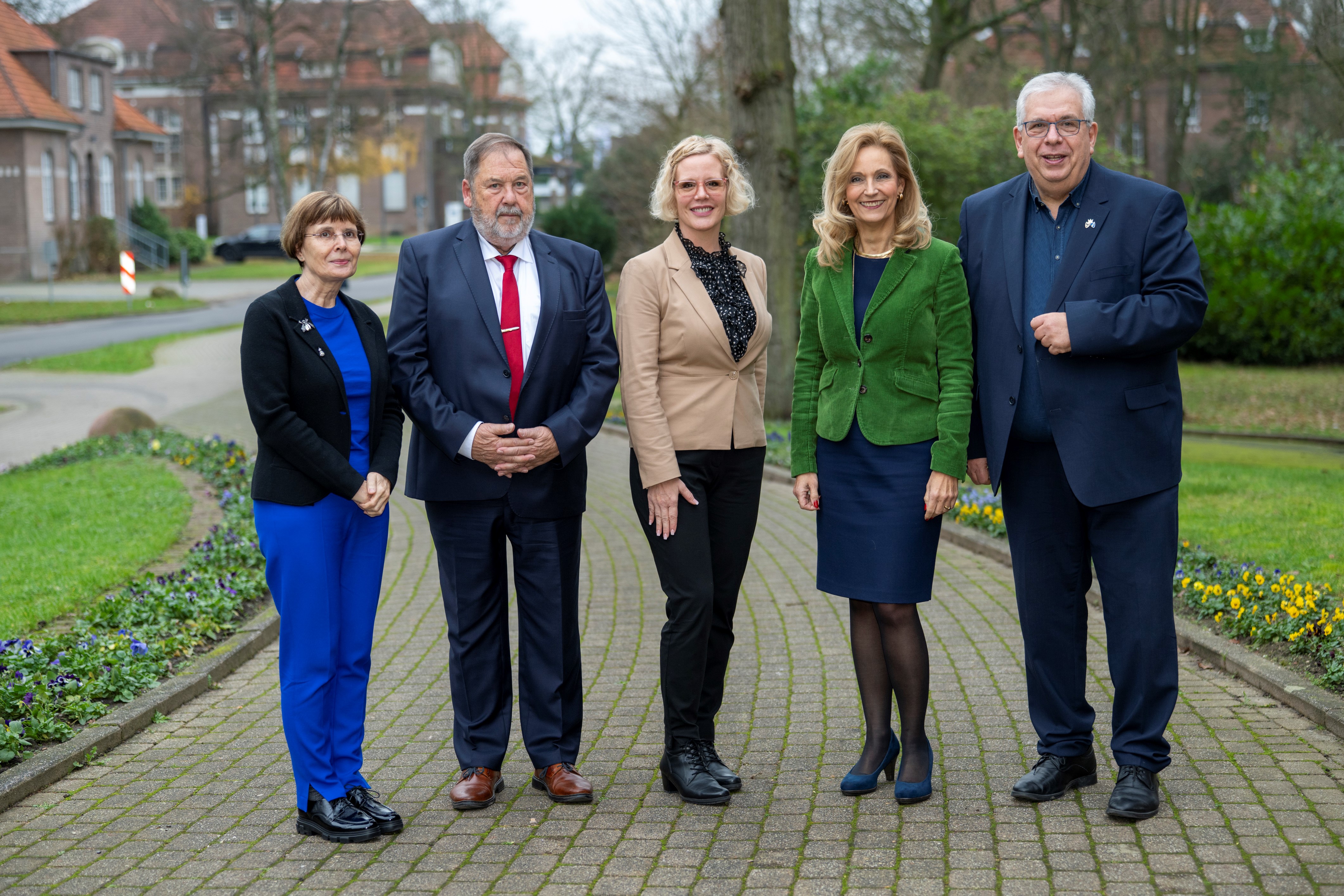 V. l. n. r.: Martina Wenzel-Jankowski, LVR-Dezernentin Klinikverbund und Verbund für WohnenPlusLeben, Holger Höhmann, Kaufmännischer Direktor der LVR-Klinik Bedburg-Hau, Carola Bohlender, künftige Kaufmännische Direktorin der LVR-Klinik Bedburg-Hau, Ulrike Lubek, Direktorin des Landschaftsverbandes Rheinland und Guntmar Kipphardt, Vorsitzender des Krankenhausausschusses.
