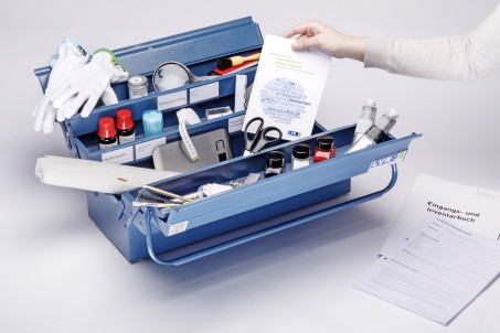 Der Koffer beinhaltet neben Handschuhen und Lupe alle nötigen Beschriftungsmaterialien für unterschiedliche Materialgruppen, Messwerkzeuge, exemplarisches Verpackungsmaterial, Materialien für die Objektfotografie etc.
