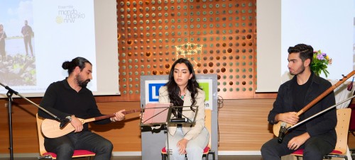 Zum Ausklang des ersten Veranstaltungstages gab Kabarettist Fatih Çevikkollu eine Kostprobe aus seinem neuen Programm „Zoom“. Und auch das Musik-Ensembles mondomuziko, dem interkulturellen Projekt „Heimat: Musik“ des Landesverbandes der Musikschulen NRW, begeisterte das Publikum mit ihrem Auftritt.