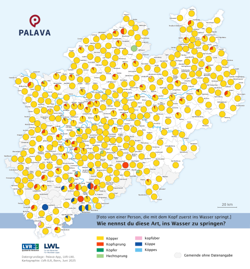 Wer weitere Bezeichnungen für den Sprung ins Wasser kennt, kann diese gerne noch mitteilen. Die PALAVA-App steht kostenlos in allen App-Stores zum Download zur Verfügung. Jeden Monat wird in der App eine neue Karte mit Ergebnissen veröffentlicht.