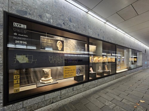 Die Schaufenster wurde vom Römisch-Germanischen Museum der Stadt Köln zur Verfügung gestellt und entstanden in enger Kooperation mit der Fördergesellschaft der MiQua-Freunde e.V. und der Archäologischen Gesellschaft Köln e.V.