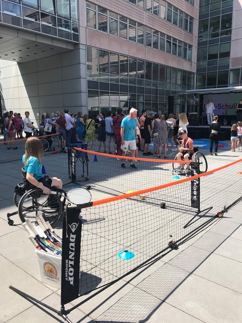 | Auftritt einer inklusiven Band, |  | Sportstation mit Rollstuhl-Tennis, |  | LVR-"Mobil der Begegnung" mit interaktiven Mitmach-Angeboten, |  | Besuch vom LVR-Maskottchen "Mitmän" sowie |  | Unterstützung bei weiteren barrierefreien Maßnahmen im Wert von 1.000 €. | |